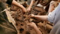 Die Erden Schule richtet ihren Fokus auf Material, und schafft durch die Freie Lehm Arbeit Möglichkeiten um Räume intuitiv und haptisch zu begreifen. Dieser Prozess ist für alle geeignet. Es braucht keine Computerkenntnisse, oder Designprogramme, keine scharfen Werkzeuge, nur die eigenen Händen, gerne ein Modellierwerkzeug, vielleicht eine Gabel und ein Buttermesser . Daher ist es auch sehr unmittelbar und in der Arbeit sehr niederschwellig. Es ermöglicht eine Idee für ein Gebäude oder eine Landschaft innerhalb kürzester Zeit zu erschaffen. Die Beschaffenheit des Material Lehm ermöglicht die eigenen Gedanken und Ideen fließen zu lassen, oder auch schnell in Form bringen, oder wieder zu zerstören. Es erlaubt, das Innehalten, das Verändern und nacharbeiten. Es ist aber auch gleichzeitig kein „ zu“ schnelles Generieren von zahllosen Varianten. Es ist haptisch, und umfasst den ganzen Leib des Modellierenden. Flow Momente entstehen leicht. Indem der Mensch über seine Hände mit dem Material kommuniziert, wird der Entwurf unweigerlich zur visuellen Sprache.