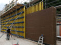 Der horizontale lagenweise Verdichtungsprozess erfordert eine möglichst geringe Ankeranzahl im Arbeitsbereich und je nach Wandstärke wird das Schalungssystem angepasst.